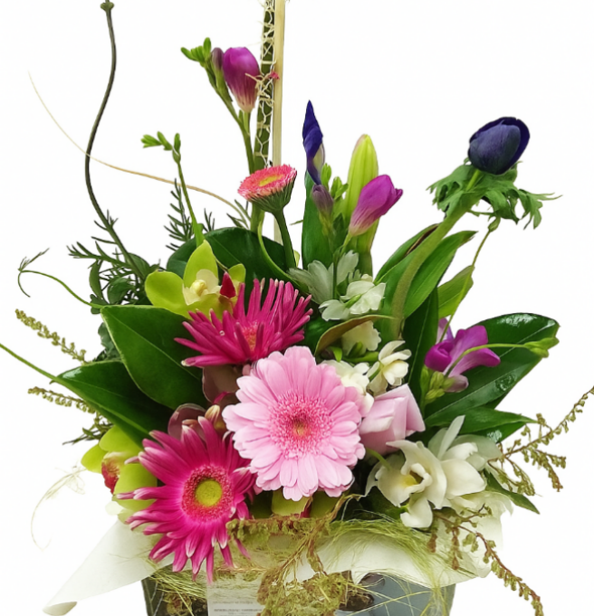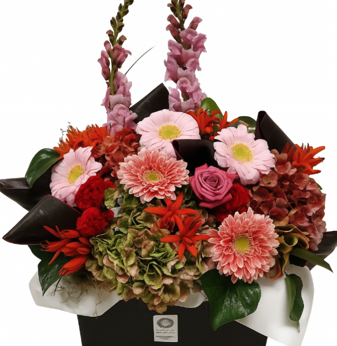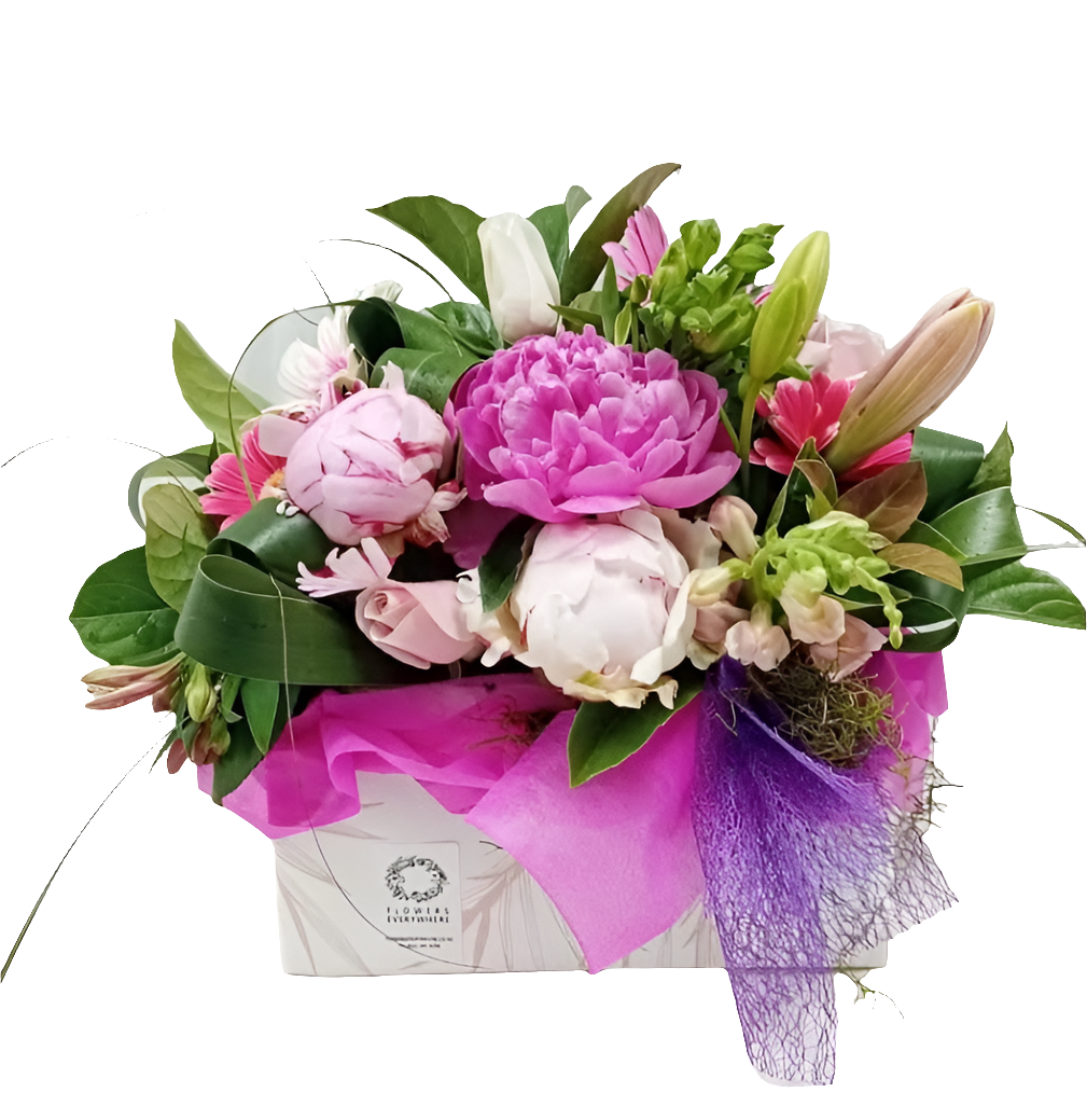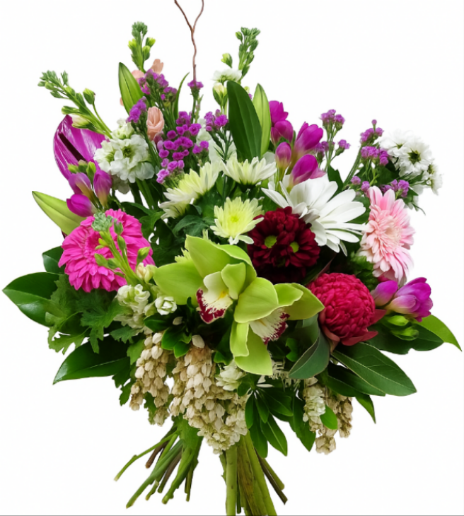 This round bouquet in pretty pink tones is uniquely made to order with seasonal flowers fresh from the market. It will also include seasonal foliage and lovingly wrapped for a safe arrival.